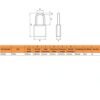 - Removable and adjustable hardened steel shackle from 70mm – 155mm